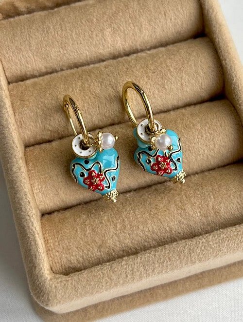 گوشواره میناکاری قلب واشاری