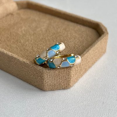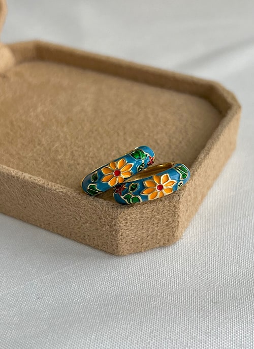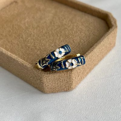 💙🧡 گوشواره میناکاری آبی و نارنجی