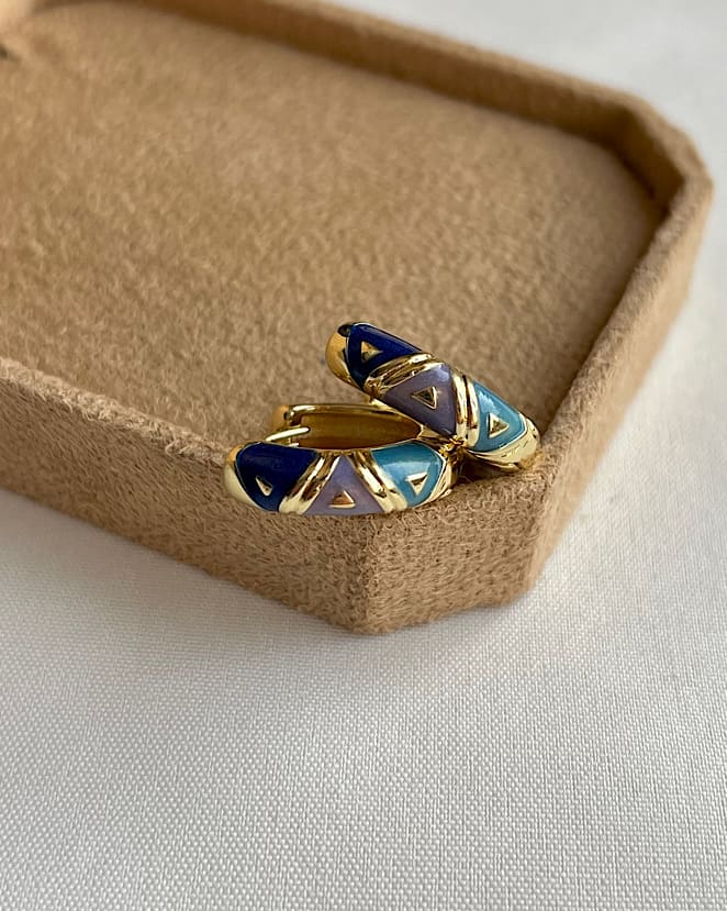 💜✨ این گوشوارههای میناکاری مثلثی با ترکیب سرمهای، فیروزهای و یاسی، یه اکسسوری خاص و هنریان که هر استایلی رو شیک تر میکنن😉