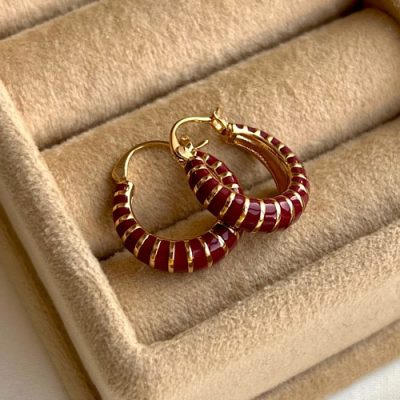 ✨ گوشواره میناکاری کرم ـ طلایی ✨