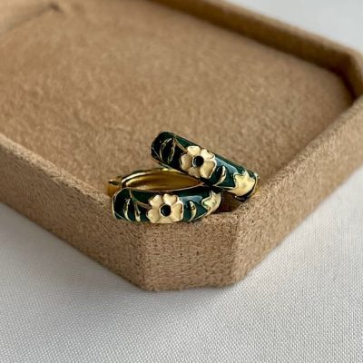 خانهبدلیجاتگوشواره گوشواره میناکاری سبز گل دار