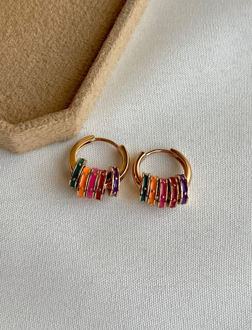 ✨ گوشواره حلقه‌ای میناکاری رنگی ژوپینگ ✨