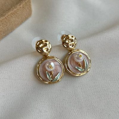 گوشواره میناکاری اویز گلبهی ۳۸۸,۰۰۰ تومان