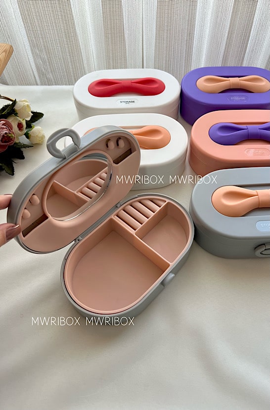 جاجواهری مربع آینه دار جنس چرم زیپی دارای جای گوشواره ٫گردنبند ٫انگشتر … تقسیما قابل جدا شدن هست رنگبندی : صورتی -سورمه ای-سفید