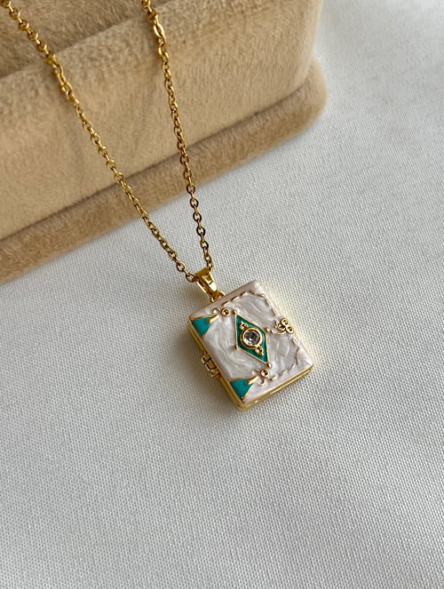 پلاک صدفی آبی با جزئیات مرواریدی ظریف 🤍✨