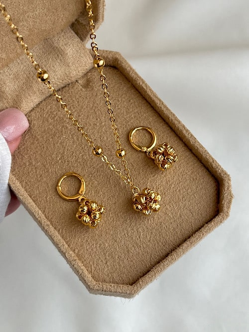 نیمست گل لاله گوشوازه+گردنبند جنس استیل ضدحساسیت