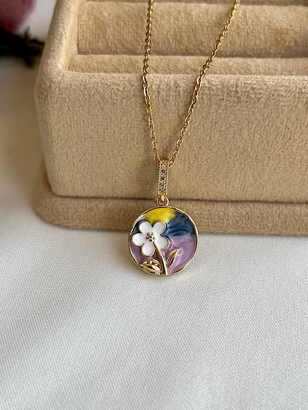 خانهبدلیجاتگردنبند گردنبندمیناکاری گل سفید
