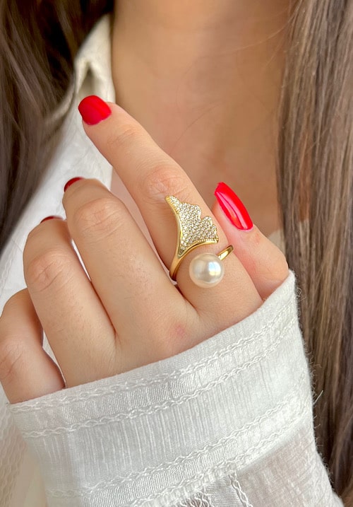 انگشتر «مروارید و وال» از برند ژوپینگ؛