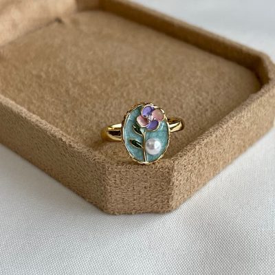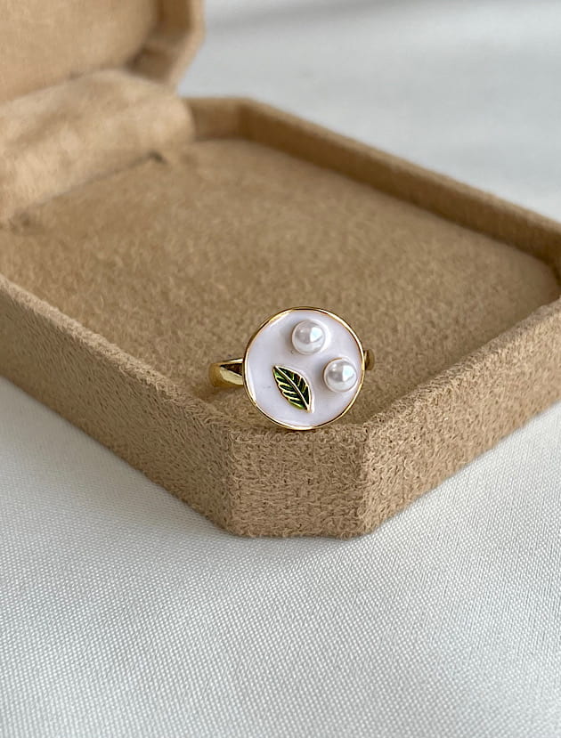 ✨ انگشتر مینا کاری دو مروارید و برگ ✨🤍
