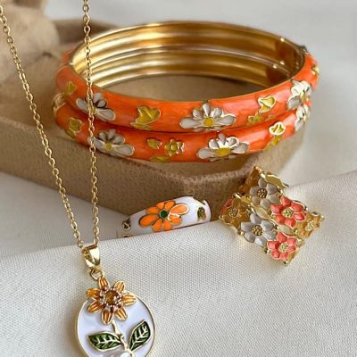ست شامل یک دستبند ٫گردنبند ٫ انگشتر و‌ یک جفت گوشواره هست