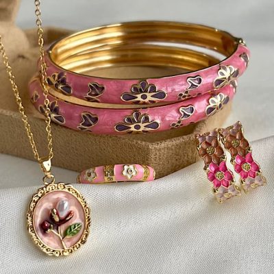 ست شامل یک دستبند ٫گردنبند ٫ انگشتر و یک جفت گوشواره هست