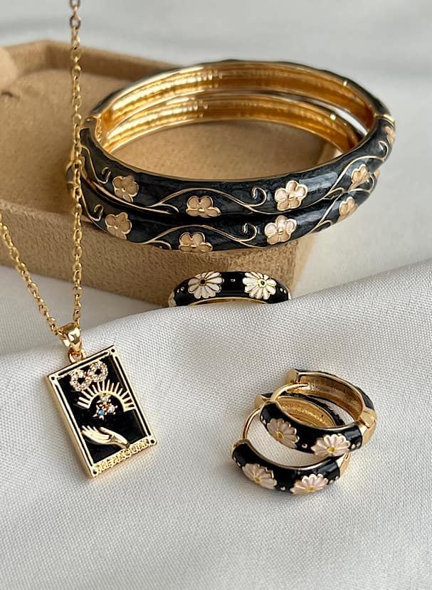 خانهبدلیجاتگوشواره ست میناکاری مشکی