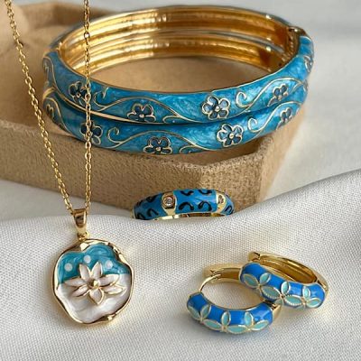 ست شامل یک دستبند ٫گردنبند ٫ انگشتر و‌ یک جفت گوشواره هست