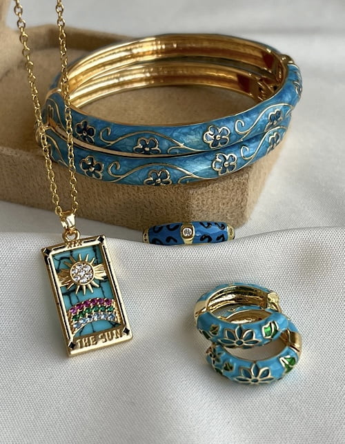 ست شامل یک دستبند ٫گردنبند ٫ انگشتر و یک جفت گوشواره هست