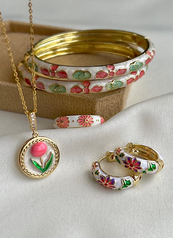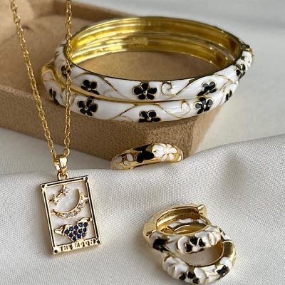 ست شامل یک دستبند ٫گردنبند ٫ انگشتر و یک جفت گوشواره هست