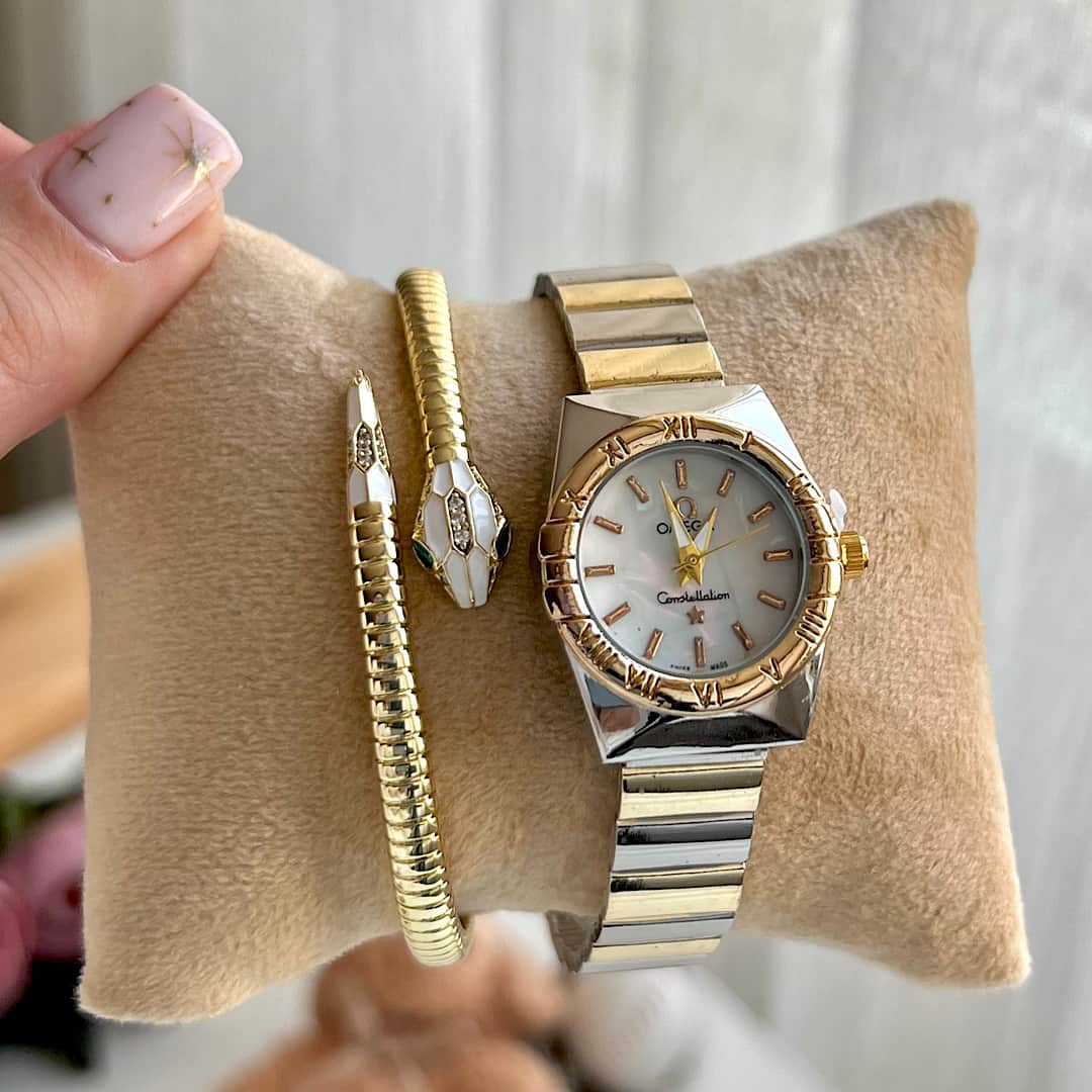 دستبند کارتیه جنس استیل رنگ ثابت ضدحساسیت قفل کتابی گردنبند و گوشواره اینکار موجود هست