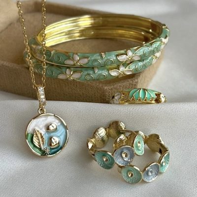 ست میناکاری سبز پاستیلی