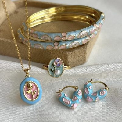 ست میناکاری آبی صورتی
