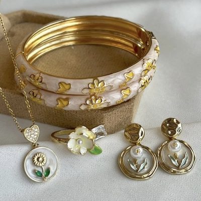 ست میناکاری صدفی زرد