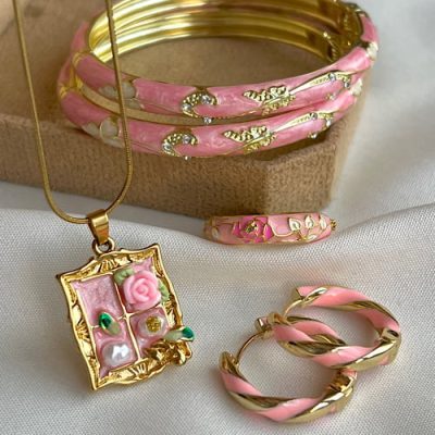ست میناکاری صورتی