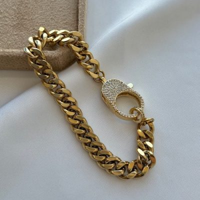 دستبند کارتیر با قفل نگینی نگین مخراجکاری شده جنس استیل رنگ ثابت فوق العاده باکیفیت