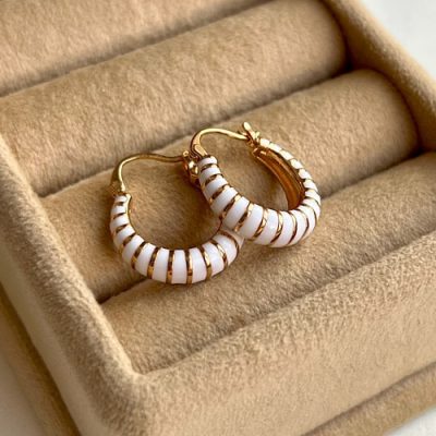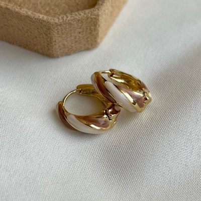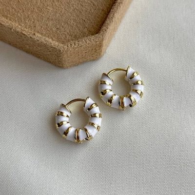 🤍 گوشواره میناکاری حلقهای کرم ـ سفید ✨